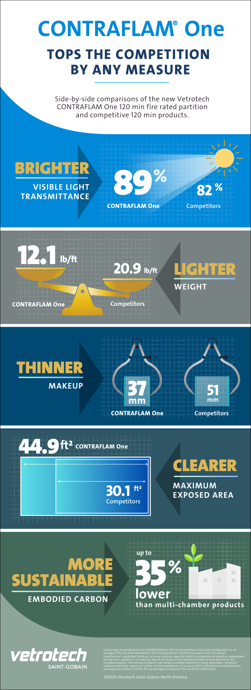 CONTRAFLAM One is clearer, lighter and more sustainable than any other fire-resistive glass on the market.
